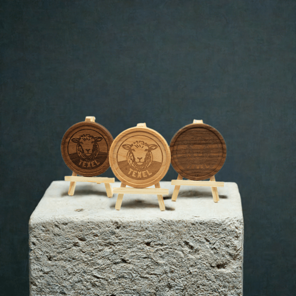 Deze ronde Walnoot onderzetters is meer dan praktisch – het is een stukje Texel in huis. Donker, stijlvol en subtiel afgewerkt met het herkenbare schaapje van het eiland. Iedere onderzetter is 9 cm in diameter, met een glasvlak van 7,5 cm. en wordt geleverd in een bijpassend kartonnen doosje.