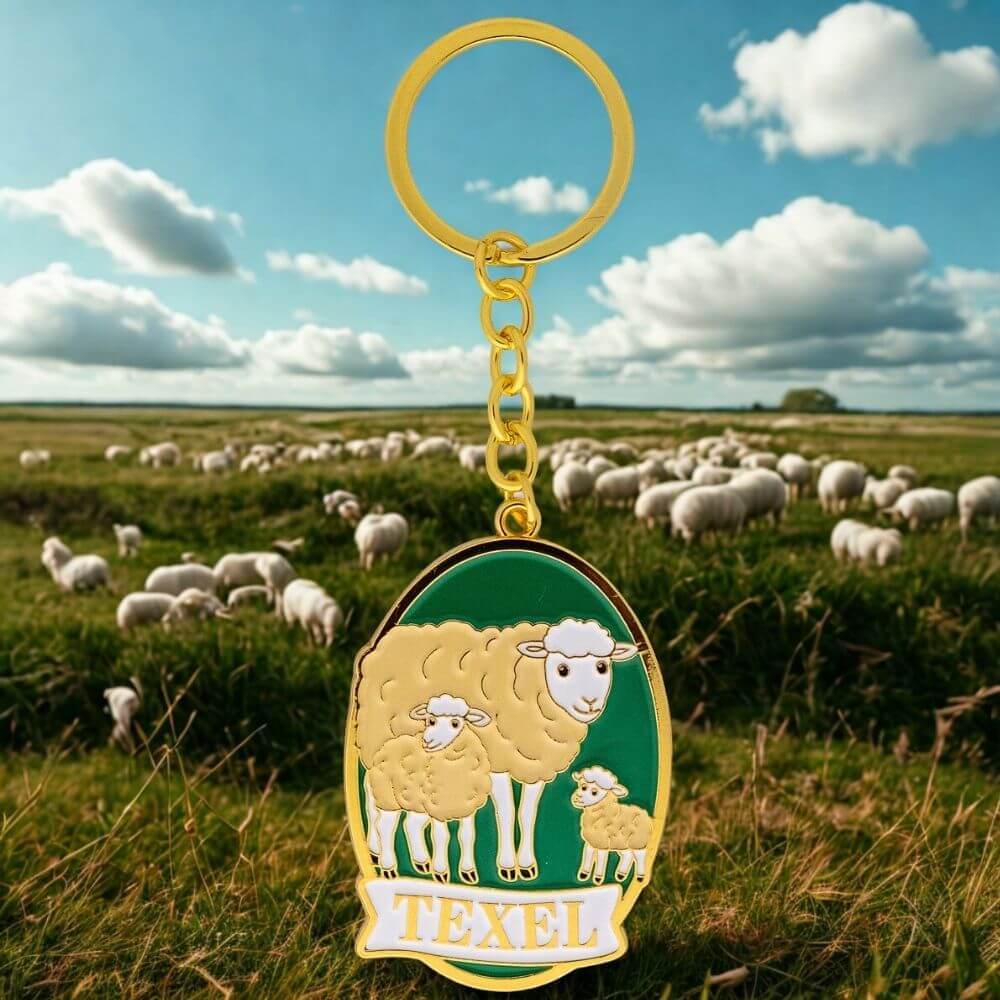 Metalen sleutelhanger met Texelse schapen, hét symbool van het eiland. Een herkenbaar en typisch Texels souvenir dat niet mag ontbreken aan je sleutelbos of als cadeautje.